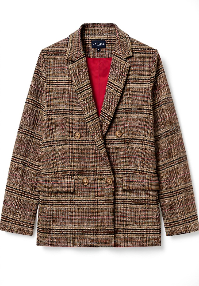 Le blazer Caroll est proposé en tailles 36, 38, 40, 42 et 44, couvrant une gamme étendue pour s’adapter à différentes morphologies.