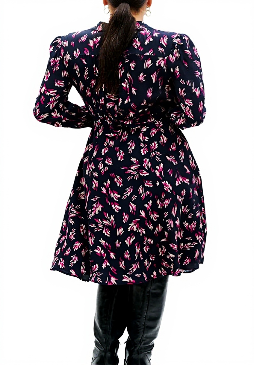 Visualisez cette robe lors d’un brunch dominical, où sa légèreté respire avec la brise printanière. En milieu de journée, alors que vous enchaînez les rendez-vous, son confort persistant devient un atout précieux. Le soir venu, lors d’une promenade improvisée, le motif Fleurs Artifice capture doucement les lueurs du couchant. Notez que par vent fort, la légèreté du tissu peut demander quelques ajustements discrets.