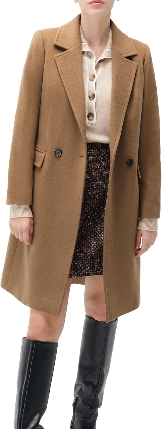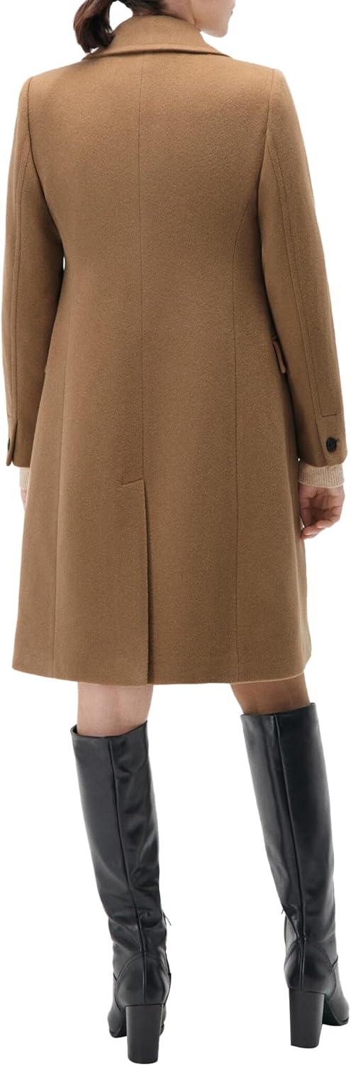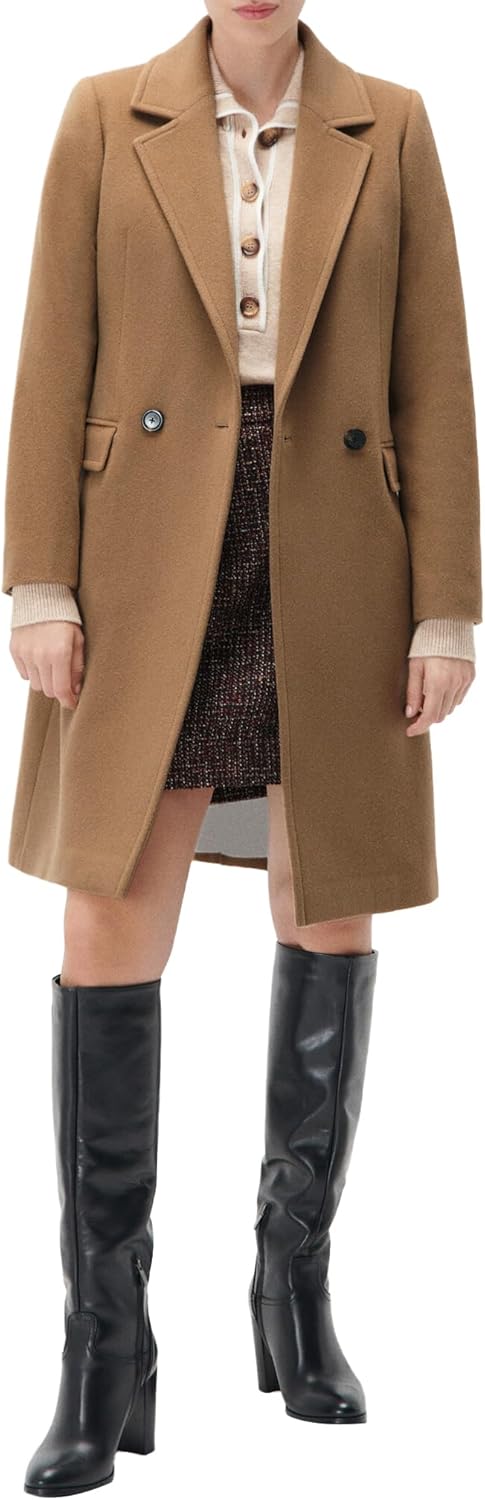 Le manteau est disponible en tailles 36, 38, 40, 42, 44 et 46, avec une coupe ajustée pour une silhouette flatteuse. Son matériau assure confort et respirabilité, adapté aux saisons fraîches.