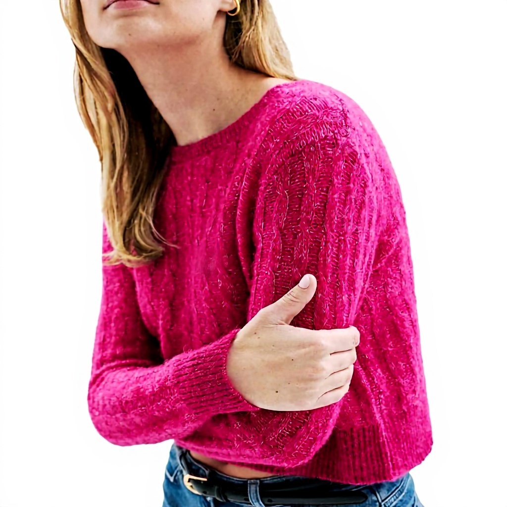 Le pull est proposé en Festival Fuchsia, Cloud Dancer et Cloud Blue, offrant des options vibrantes et neutres pour s’adapter à votre garde-robe.