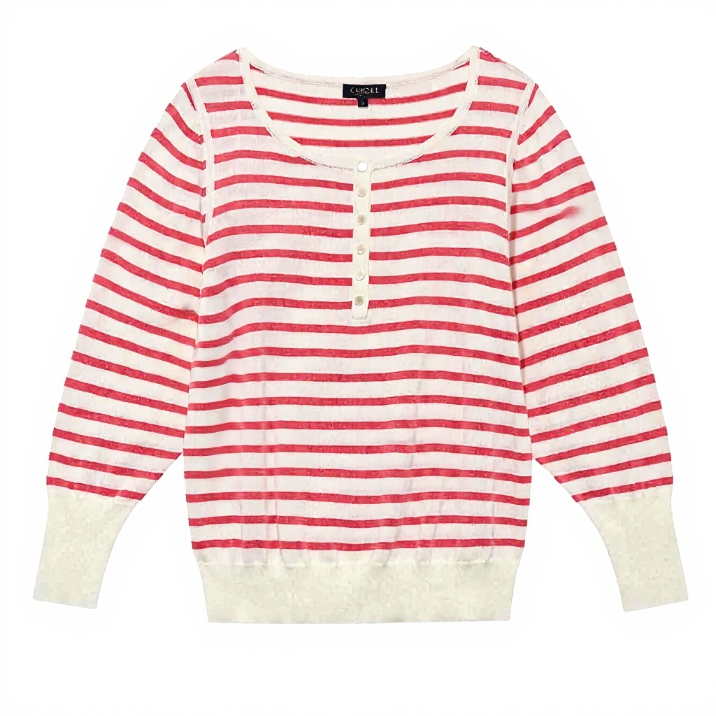 Ce pull Caroll allie design raffiné et confort quotidien. Conçu avec des matériaux soigneusement sélectionnés, il offre une sensation douce sur la peau tout en maintenant sa forme après de multiples lavages. Sa coupe moderne s’adapte parfaitement à différentes morphologies.