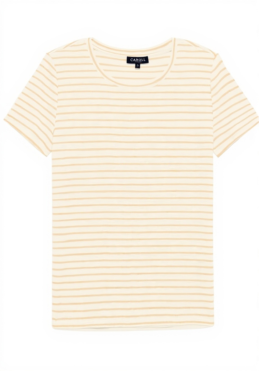 Ce t-shirt Caroll se distingue par son design marinière classique et sa coupe droite qui assure un confort optimal. Les manches courtes sont légèrement retroussées, ajoutant une touche d’élégance décontractée. Fabriqué avec soin, il allie style intemporel et qualité pour une tenue du quotidien.