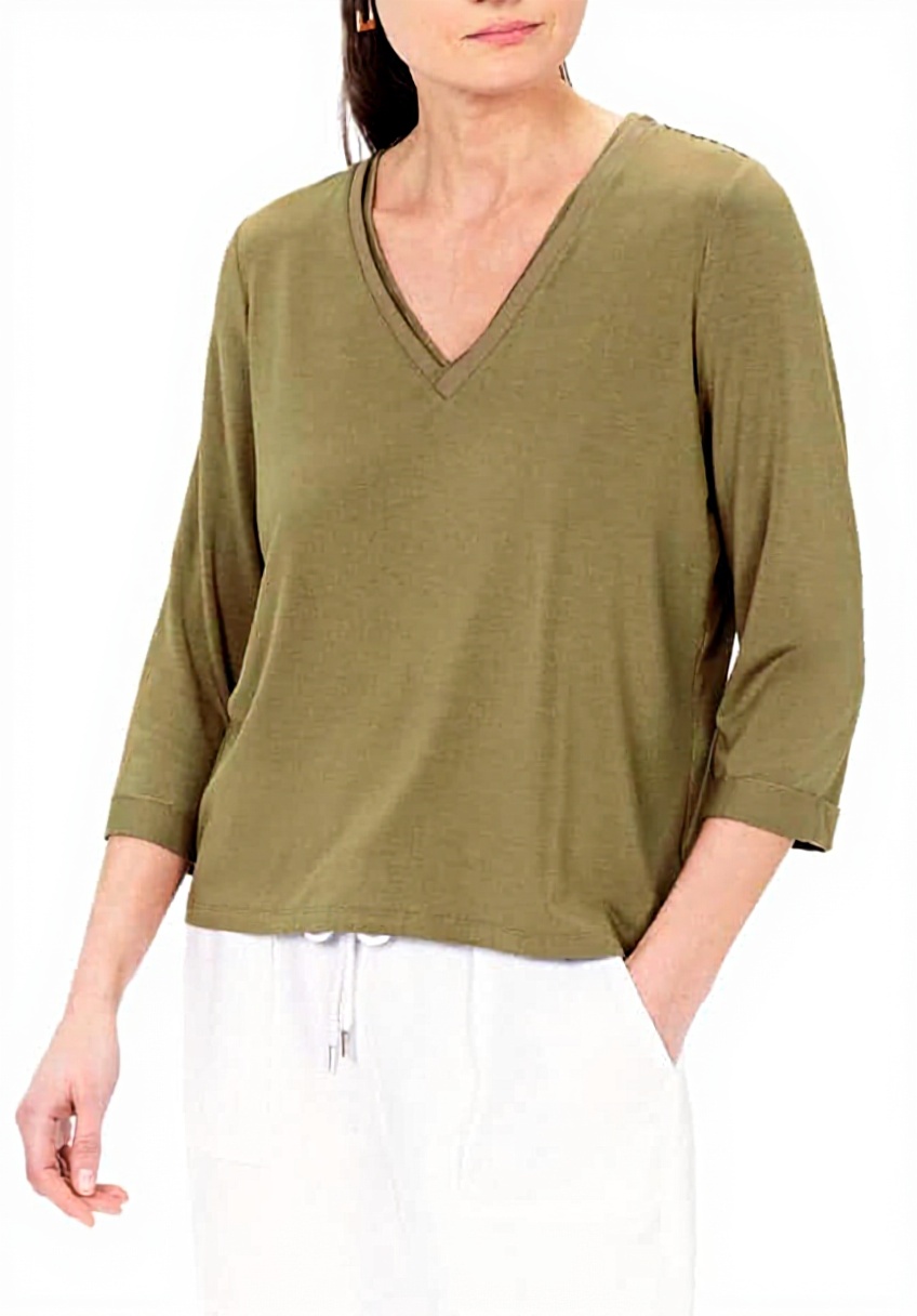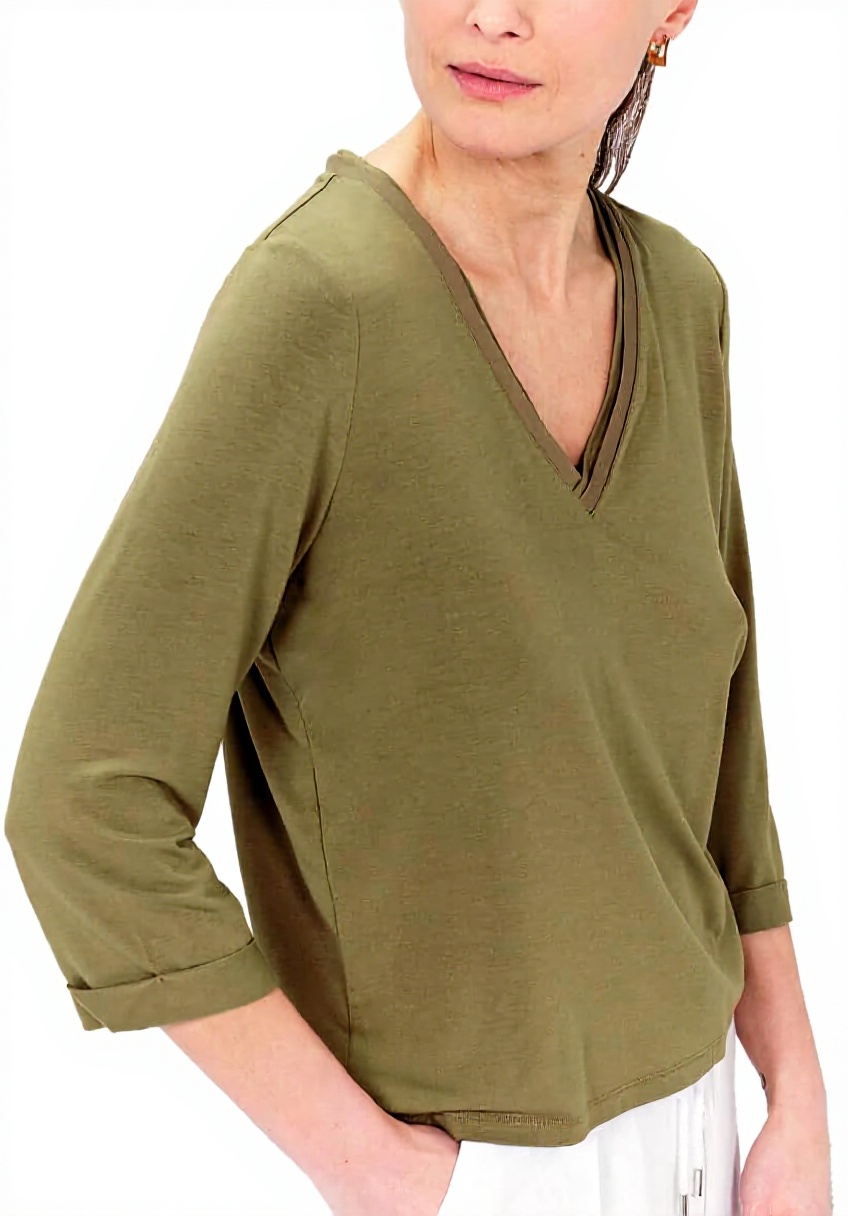 - Style polyvalent avec col V et manches 3/4 pour une élégance discrète